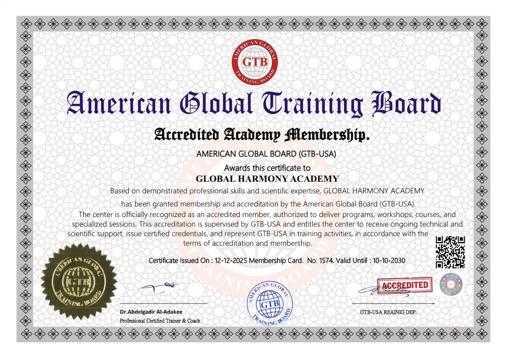 تدار أكاديمية هارموني العالمية من مقرها الرسمي في مدينة مانشستر – المملكة المتحدة، ضمن مركز تدريبي متخصص في التعليم والتطوير المهني.